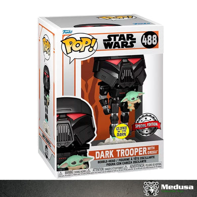 Funko Pop! Star Wars: Dark Trooper with Grogu #488 (SE) (Glow) (Dañado)
